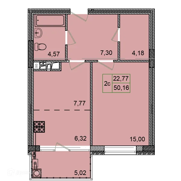 2 комн. квартира в Курске в ипотеку от 28 005 руб/месяц